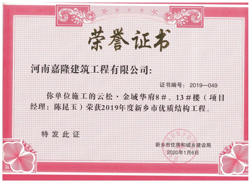中州杯工程證書